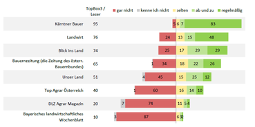 Der „Kärntner Bauer“ hat laut dem Studienergebnis unter den landwirtschaftlichen Printmedien in Kärnten die meisten Leser (95 %), vor allem regelmäßige (83 %). Damit ist der „Kärntner Bauer“ mit Abstand die reichweitenstärkste landwirtschaftliche Fachzeitung in Kärnten.