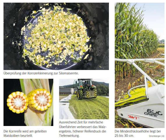 Um die Verluste in der Futterkonservierung gering zu halten, müssen bei der Erntetechnik die Häcksellänge und Kornaufbereitung sowie die Verdichtung speziell beachtet werden. Die optimale Häcksellänge bewegt sich zwischen Strukturwirkung für wiederkäuergerechte Rationen sowie Verdichtbarkeit und Konservierungserfolg im Silo.
