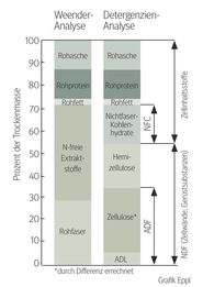 Das Grundfutter besteht in etwa zu 50% aus pflanzlichen Zellwänden, welche nur Wiederkäuer verwerten können. Seit vielen Jahren wird daher Grundfutter auf den Gehalt pflanzlicher Gerüstsubstanzen untersucht.