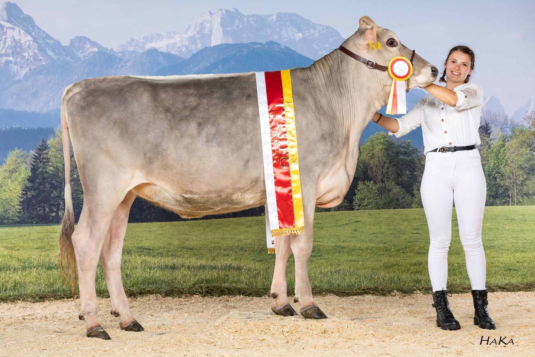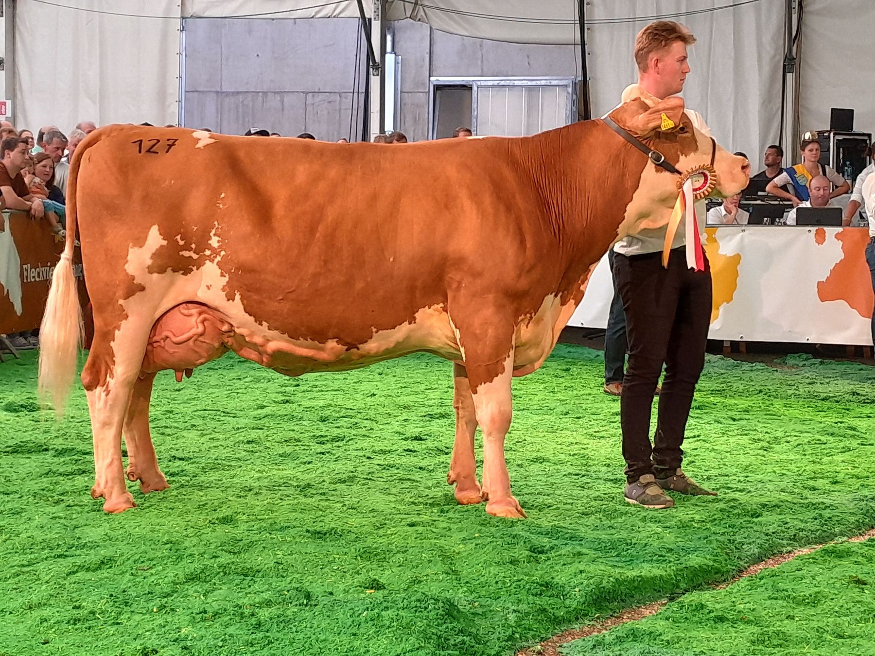 "Wanda" – Bundeschampion Altkühe: Eine harmonische Ausnahmekuh mit acht Abkalbungen vom Fleckviehzuchtbetrieb Fritz Dullnig, Kremsbrücke, vorgeführt von Kofler Matthias. © caRINDthia