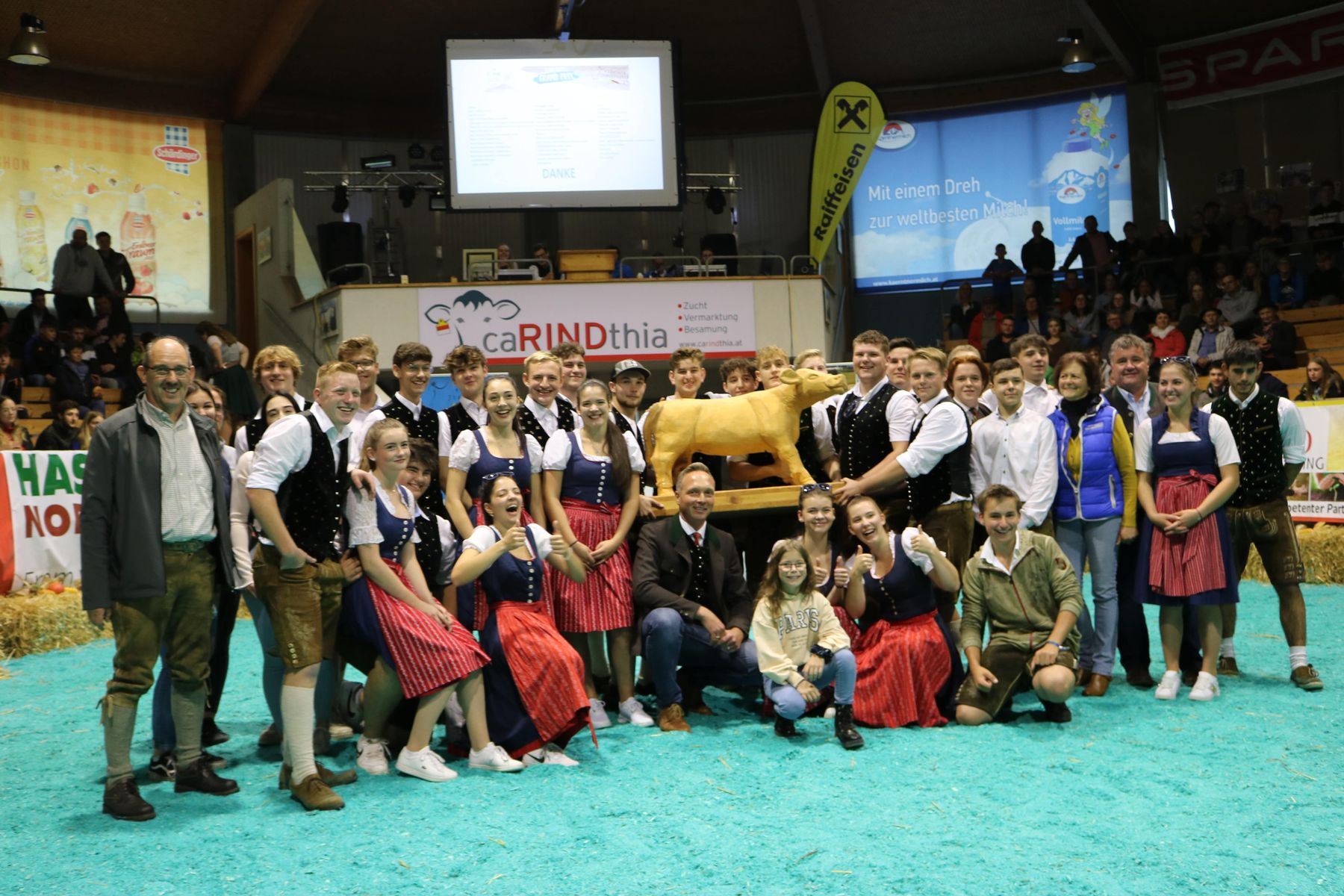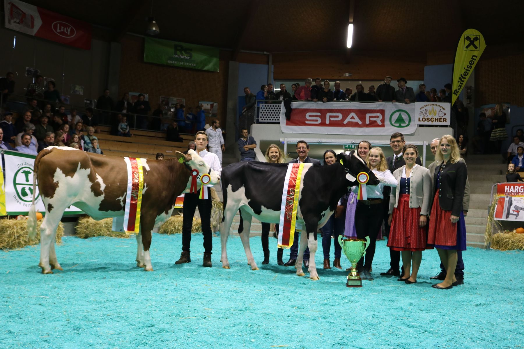 Das Team von caRINDthia unter der Leitung von Ing. Alfred Possegger freut sich über den großartigen Erfolg auf der Bundesfleckviehschau 2022, links: Bundeschampion Jungkühe Elvira; Vater: Weissensee, Karin Lichtenegger, St. Margarethen/Lav., rechts: Bundeschampion Kühe Alt Wanda; Vater: Idako; Fritz Dullnig, Kremsbrücke © caRINDthia
